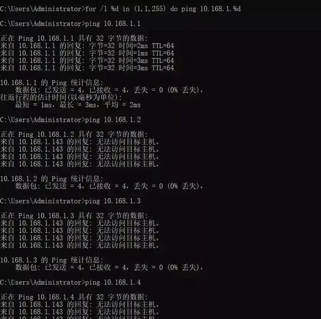 那么这段 “for L %D in(1,1,255) do ping 10.168.1.%D” 代码是什么意思呢?