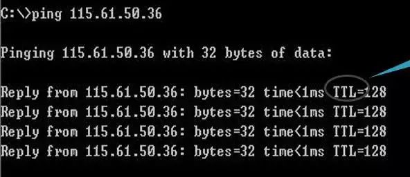 默认情况下,Linux 系统的 TTL 值为 64 或 255,WindowsNT/2000/XP 系统的 TTL 值为 128,Windows98 系统的 TTL 值为 32,UNIX 主机的 TTL 值为 255。