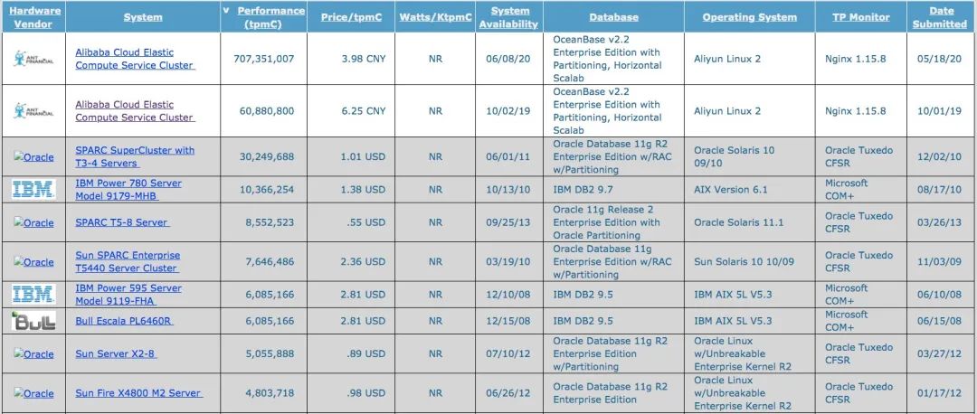 时隔不足1年,二刷TPC-C,多少让人有些意外。更让人意外是测试成绩,相当残暴,tpmC直接提升10倍,单个tpmC价格下降36.3%。极大的拉高了后来者的超越门槛。