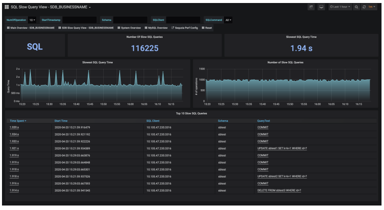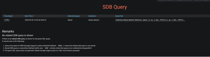 用户在通过 SequoiaPerf 对 SequoiaDB 数据库集群进行慢查询分析时,可以直接通过“Slow Query”页面查看数据库集群近期,都有哪些SQL是超出设置的查询时间阈值的。