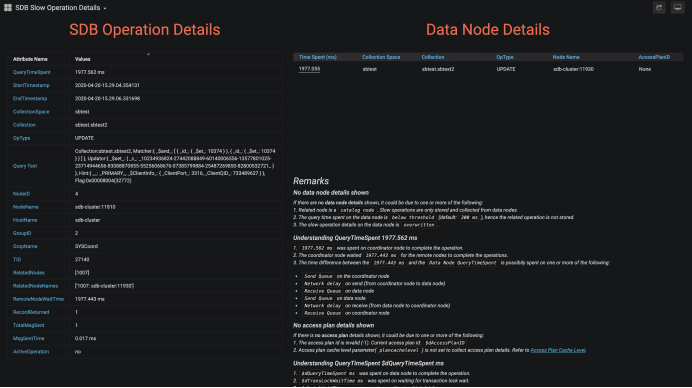 用户在 SequoiaDB 分布式存储引擎的执行页面中,可以继续点击列表中“Time Spent”一栏的信息,获取存储引擎中各个数据节点详细的执行信息。