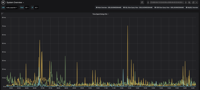 例如服务器磁盘的I/O使用情况,可以通过放大图表获得更加详细的数据。同时用户也可以通过页面右上角的时间栏,选择查看近期一段时间的资源使用情况。