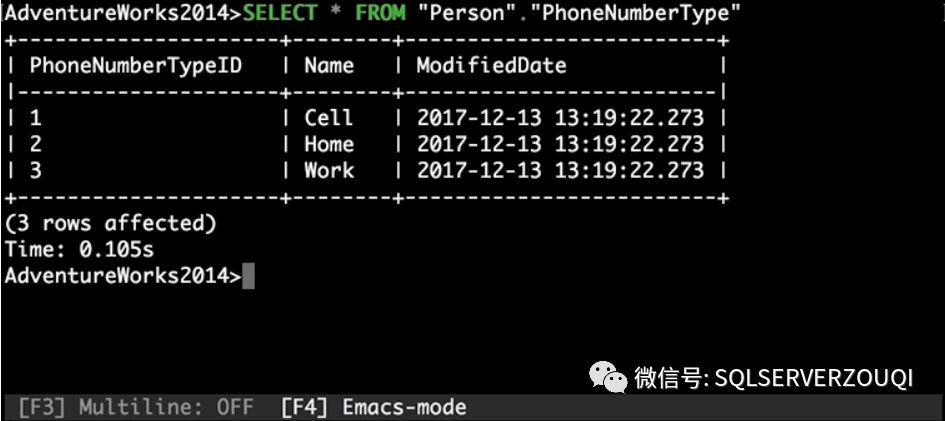 在命令行环境下有所增强的功能还是挺好的,适合于没有图形化界面的场景下使用。如果用于开发、管理或查询等,有条件的情况下,还是建议在Windows平台下使用SSMS吧。