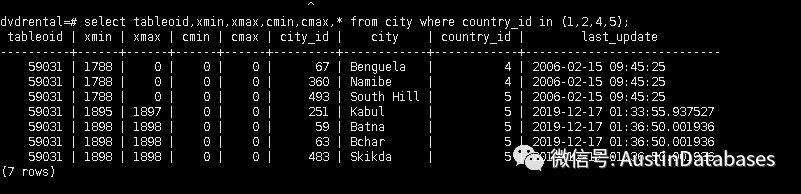 一个表中都有的字段 tableoid,cmax,xmax,cmin,xmin