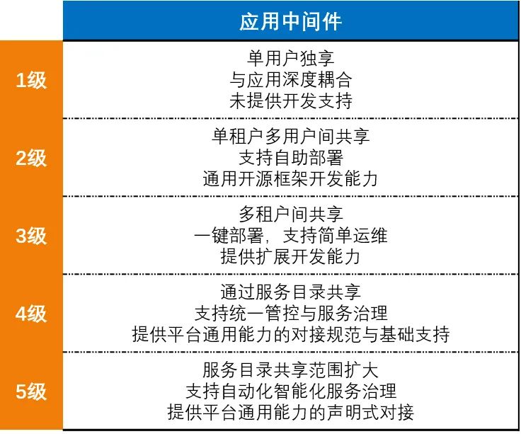 表1 应用中间件各等级关键特征说明
