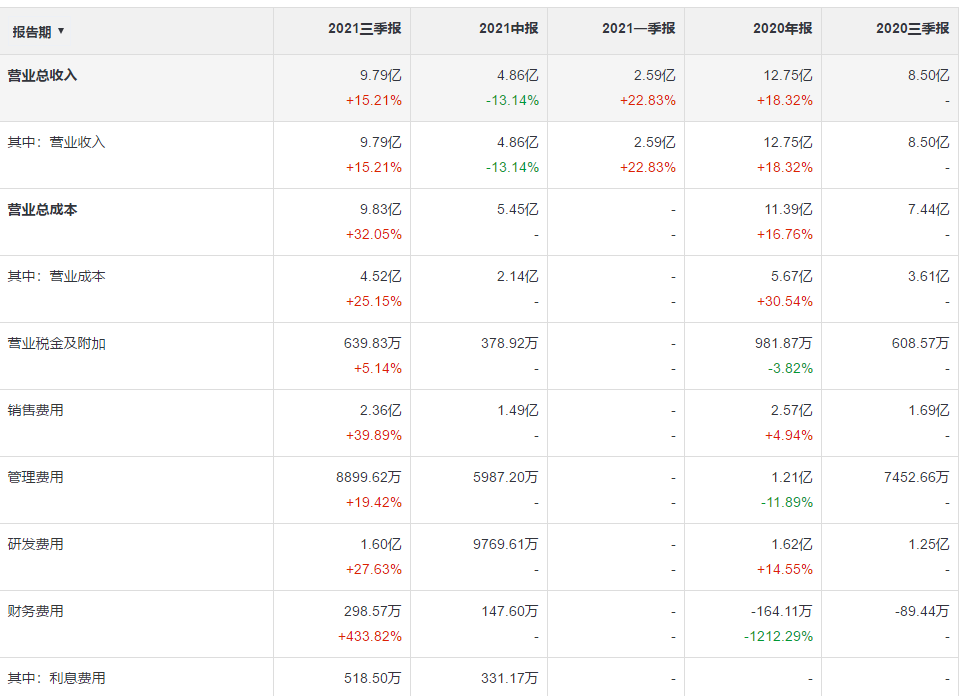 2021年前三季度,亚信安全营收增长了15.21%,但是营收成本却增长了32.05%。营收总成本分为几大块,分别是营业成本、销售费用、管理费用、研发费用,以及财务费用和营业税金和附加。