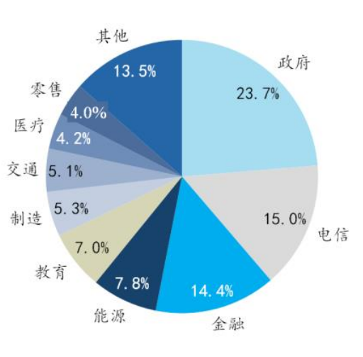 从行业分布来看,2019年中国网络安全市场占比最大的是政府,其次是电信和金融。