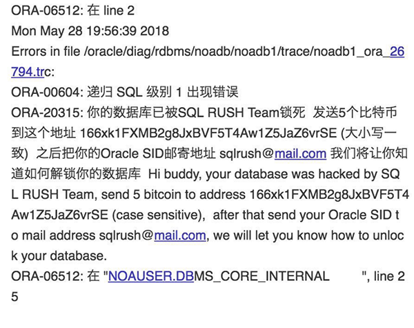 勒索代码隐藏在Oracle PL/SQL Dev软件中,里面的一个文件afterconnet.sql被黑客注入了病毒代码。这个代码会在用户连接数据库后立即执行,如果用户的账号拥有dba权限,它会在用户的数据库中创建多个存储过程和触发器,会阻止用户连接数据库。当用户重启动后,会触发病毒触发器,加密并删除sys.tab$,导致用户无法访问数据库中所有的schema, 出现“你的数据库已经被SQL RUSH team锁死,请发送5个比特币到xxxxxxxxxxx地址,….”等信息,并设置定时任务,如果在期限内不交赎金,就truncate所有的表。病毒发作危害极大,而且原厂和相关的安全厂商都很难恢复。