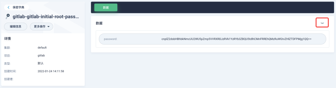 首先让我们来登陆 GitLab。GitLab 的初始密码被作为 Secret 保存,我们可以回到项目首页,在「配置」下的「保密字典」中搜索initial