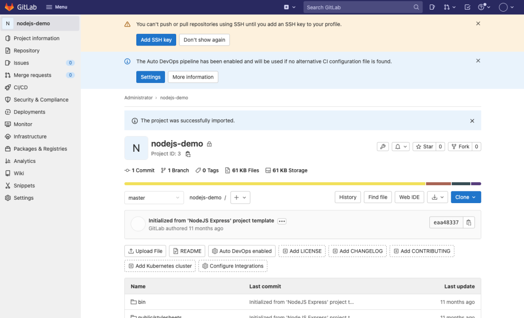 的形式,例如ssh://git@gitlab.example.com:32222/root/nodejs-demo.git