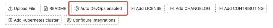 找到项目页面中间部位的文件及功能快捷入口区域,点击「Auto DevOps enabled」按钮块,进入配置页面后取消Default to Auto DevOps pipeline