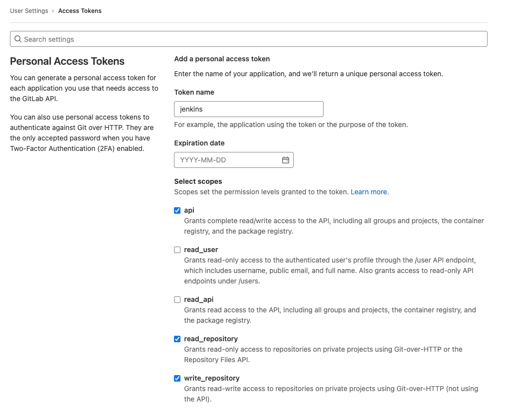 这项,用于我们之后同步 Jenkins Pipeline 的状态到我们的 GitLab 服务中
