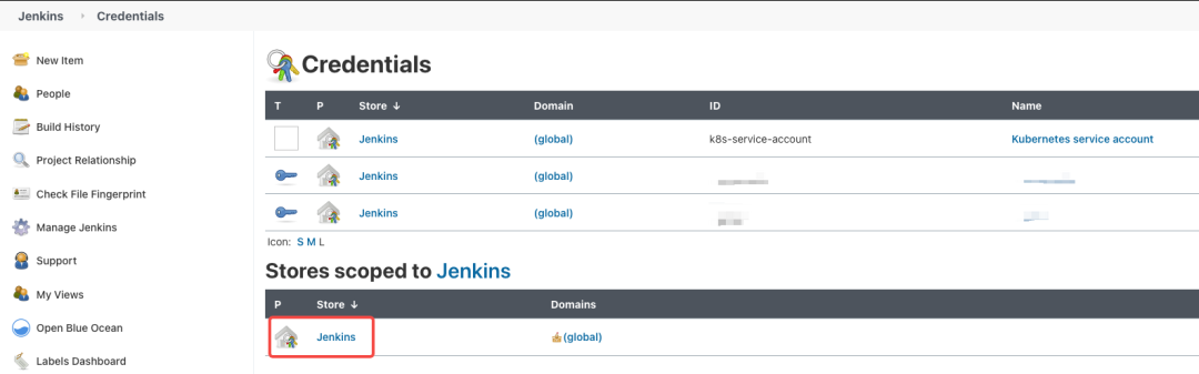 然后我们回到 Jenkins 首页,从「Manage Jenkins ➡️ Manage Crendentials ➡️ Stores scoped to Jenkins ➡️ Jenkins ➡️ Global crendentials (unrestricted)」进入凭证创建页面。