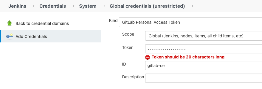 创建 GitLab Personal Access Token 的 Jenkins Crendential