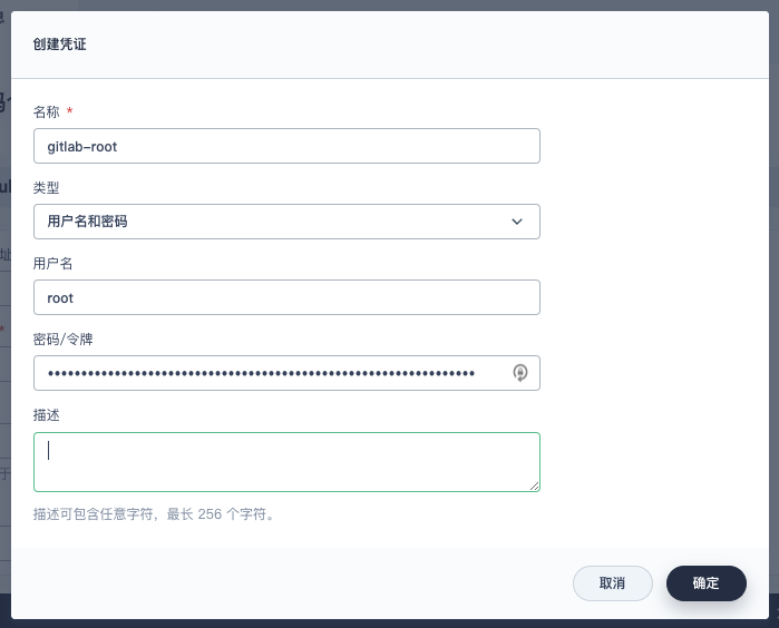 填入刚刚复制备用的 GitLab 令牌字符串(可忽略字符串长度的提示)
