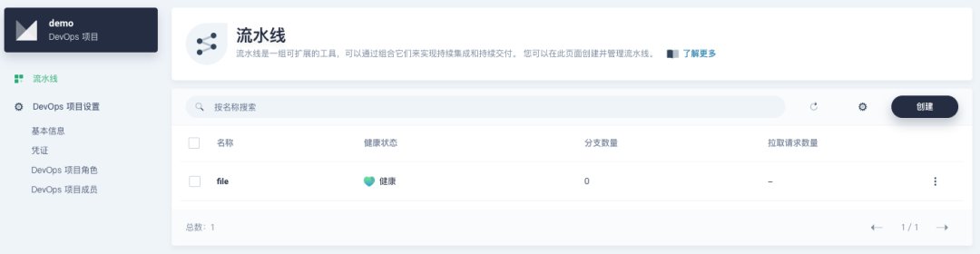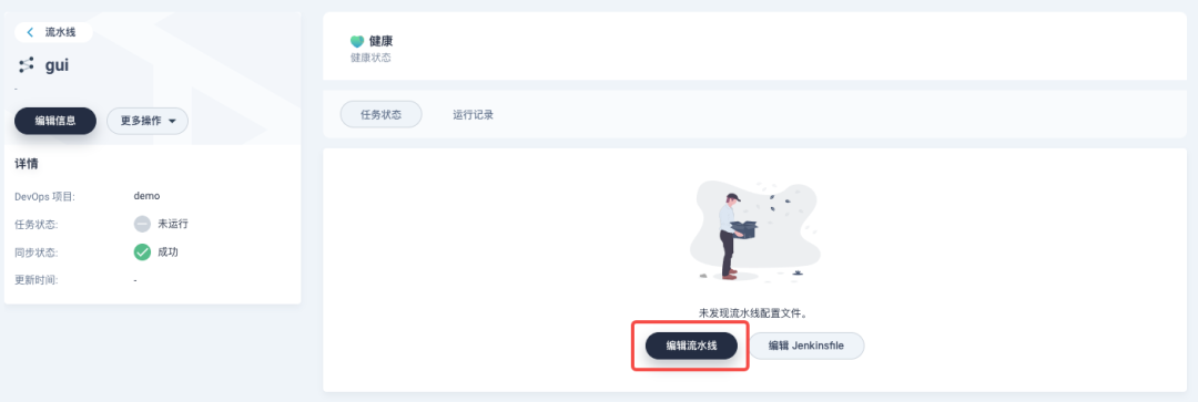 流水线,可以看到系统已经扫描到带有Jenkinsfile