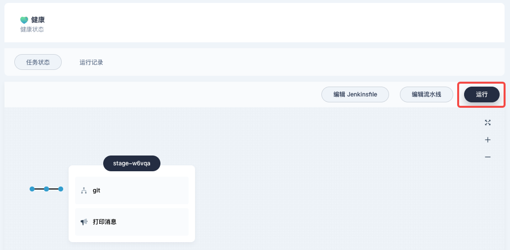 完成编辑后「确定」再「确定」来保存流水线,回到详情页面后,可以通过右上角的「运行」按钮来执行流水线。