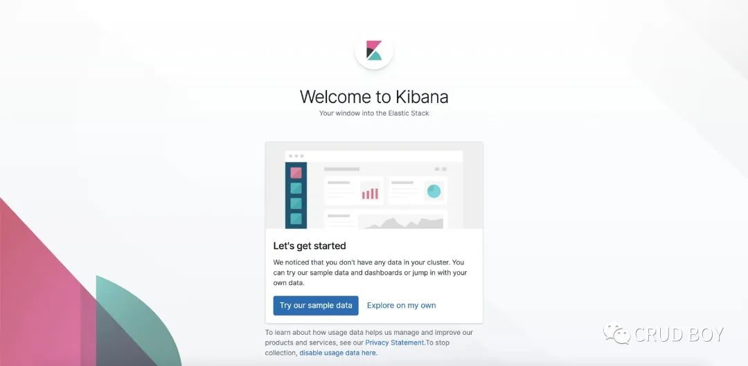访问 http://127.0.0.1:5601,进入以下页面,说明部署成功