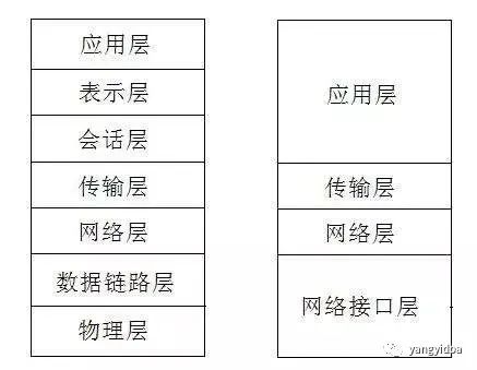TCP/IP协议模型(Transmission Control Protocol/Internet Protocol),包含了一系列构成互联网基础的网络协议,是Internet的核心协议。 基于TCP/IP的参考模型将协议分成四个层次,它们分别是链路层、网络层、传输层和应用层。下图表示TCP/IP模型与OSI模型各层的对照关系。