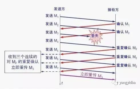 接收方收到了M1和M2后都分别发出了确认。现在假定接收方没有收到M3但接着收到了M4。