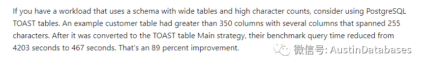 所以总结一下,PG 在处理比较大的字段上并没有什么问题,但涉及不合理的事情其实与能不能接受,