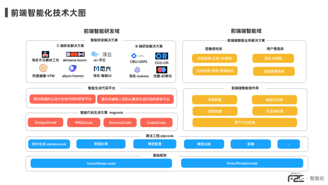 调研发现,市面上就 2 种形态的解决思路,一种就是堆人的 hardcode 方式,包括传统的组件化生态,也都停留在这个阶段上;再有一种解法是 lowcode 的方式,或者辅助自己或者辅助其他角色来做生产(换一句话来说就是生产关系转移到其他角色身上),这种方式在特定领域内能一定程度上提效,但一旦领域拓宽或稍有移植,就会面临着不适应,用它工作量反而比 hardcode 增加很多。目前我们就在第 2 阶段,但生产效率问题还是非常突出。所以我选择的解法是 nocode,虽然这个词也不是我新创的,但这个词的涵义足以表达我对生产力供给能力提升下一个阶段的看法。而能帮助前端实现 nocode 解法的技术,一定就是 AI(准确来说是机器学习)。Why?