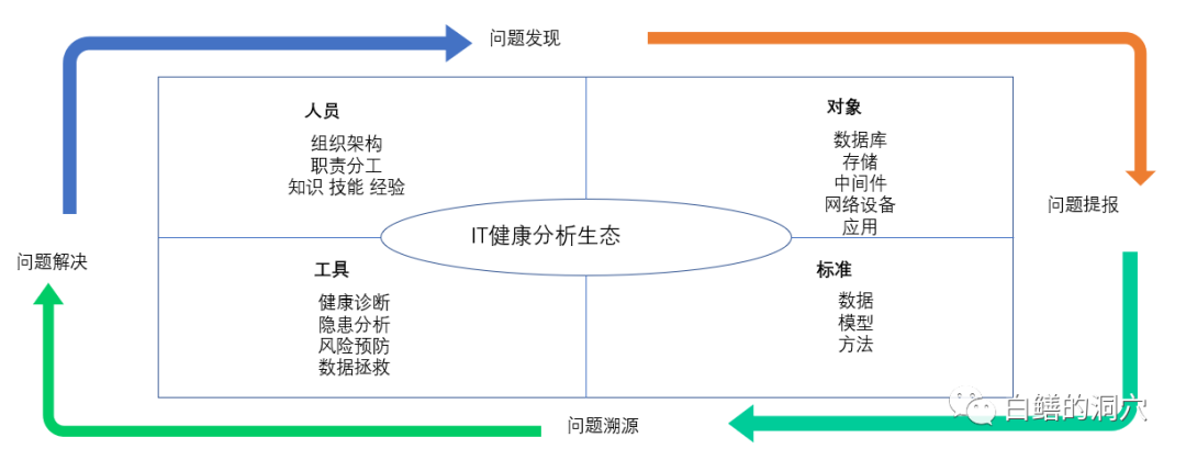 IT健康管理的目标是建立健全的“IT健康分析”新模式,构建“IT健康管理”生态体系,形成一套体系、一套标准、一套方法,通过迭代、完善,逐步适用于企业信息化发展需求。一套体系是指构建“IT健康分析”生态体系,形成一套体系、一套标准、一套方法,通过迭代、完善,逐步适用于企业信息化发展需求。这套工作体系有5个特点,随着运维工作的不断深入,对运维工作的范围、覆盖面、工作难度等都提出了新挑战,向全员参与、全生命周期优化、常态化覆盖、全栈技术覆盖、健康管理方向发展。从信息系统运行稳定性、性能与可靠性等相关的KPI入手,重点关注信息系统的运行健康状态,当系统出现问题的时候通过状态巡检等技术手段进行深入诊断,并对高风险问题进行及时预警,编制优化方案,进行应急保障处置。核心工作覆盖“指标管理、健康管理、智能预警、深度诊断、状态巡检”这5个技术关键点。同时利用技术关键点,结合专职队伍与虚拟专家团队的技术力量,提供“方案支撑、实施支撑、应急保障和建转运核查”这四项工作。