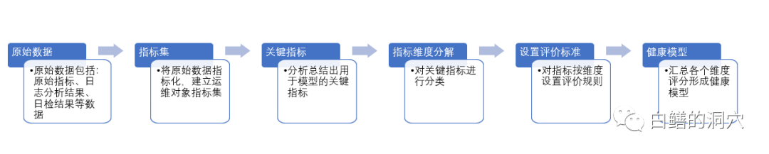 大家都可以看出,IT健康管理最为关键的技术问题是智能模型的建设,如何实现智能模型的建设呢?首先我们需要从信息系统采集原始的指标数据,经过加工后形成指标集,从指标集中识别出关键指标进行指标维度分解,最终形成运维模型。运维模型包括健康模型、故障模型和容量模型等。模型分专家模型和智能模型,专家模型用于评价打分,智能模型则提供智能评分及趋势预测。