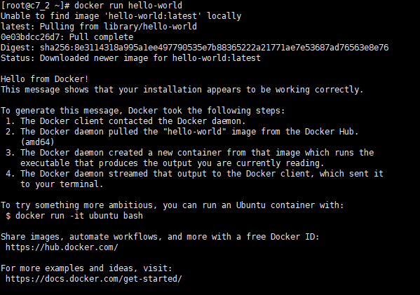 [root@c7_2 containers]# docker image ls # 或使用 docker images 查看REPOSITORY TAG IMAGE ID CREATED SIZE mysql latest a7a67c95e831 7 days ago 541MB hello-world latest bf756fb1ae65 4 months ago 13.3kB
