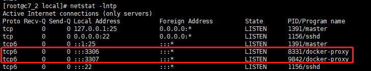 [root@c7_2 local]# docker exec -it mysql bin/bashroot@9f6668b5d029:/#