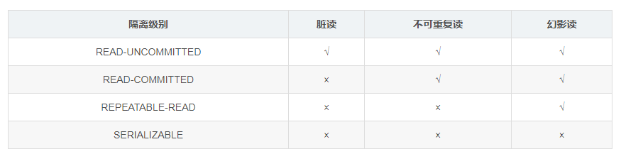 SERIALIZABLE(可串行化):最高的隔离级别,完全服从ACID的隔离级别。所有的事务依次逐个执行,这样事务之间就完全不可能产生干扰,也就是说,该级别可以防止脏读、不可重复读以及幻读。
