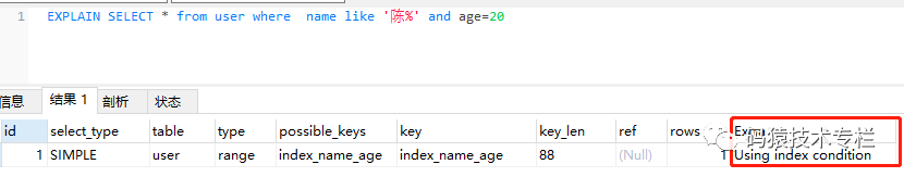 根据explain解析结果可以看出Extra的值为Using index condition,表示已经使用了索引下推。