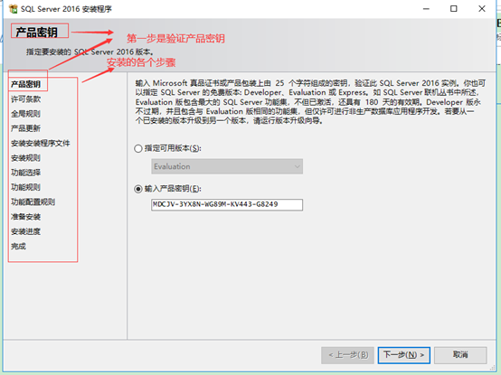 因本次安装的是SQLSERVER2016 企业版 ,存在对应产品的密钥。