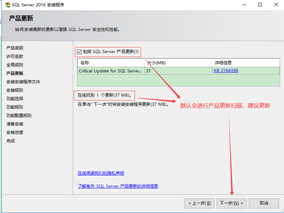 安装时会进行本次的安装介质是否需要更新,建议安装时进行更新,用以增强SQL SERVER的安全性及性能。