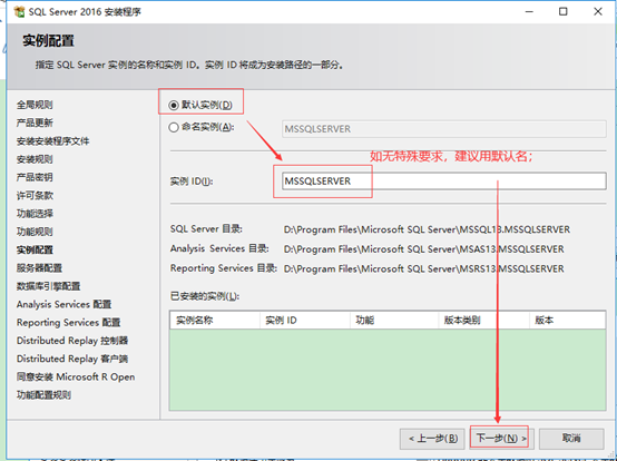 规则检测通过后即可进行实例配置,如果首次安装的话,建议使用默认实例名及实例ID,