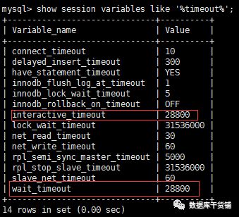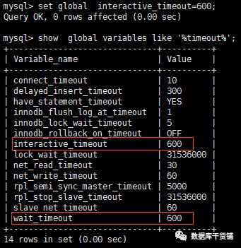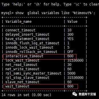 显示同时设置interactive_timeout和wait_timeout才会生效,按照此提示,我们进行interactive_timeout参数修改。