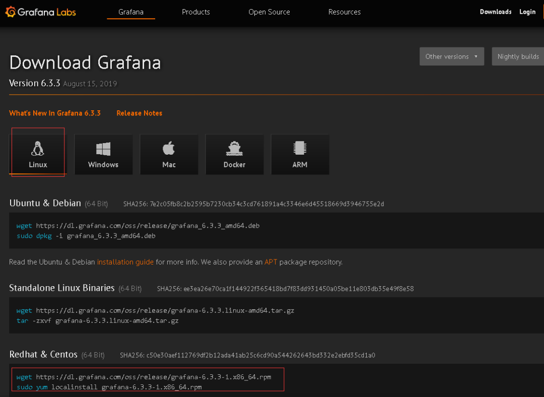 wget https://dl.grafana.com/oss/release/grafana-6.3.3-1.x86_64.rpmsudo yum localinstall grafana-6.3.3-1.x86_64.rpm