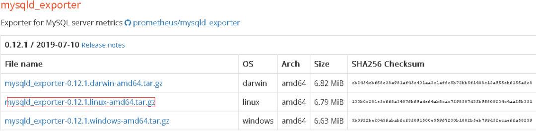 下载监控MySQL的mysqld_exporter,依旧从官网下载