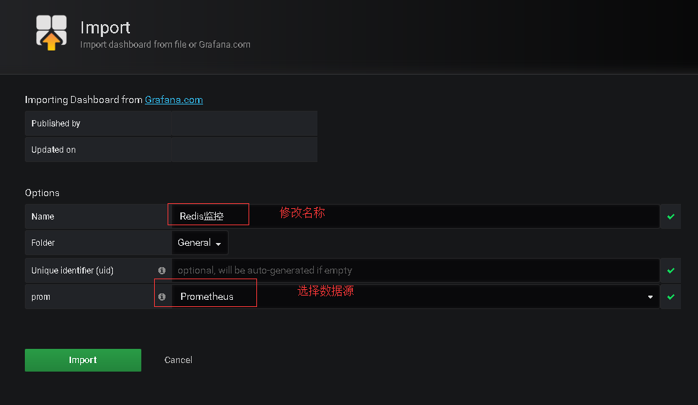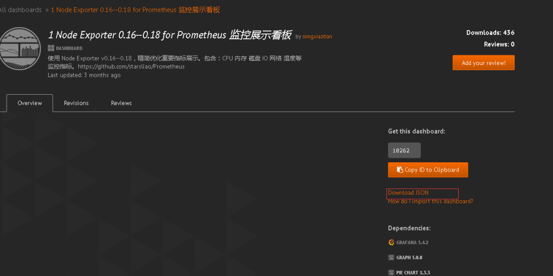 以上模板grafana官方网站均有,可以根据自己的需要下载对应的模板,对应地址为https://grafana.com/grafana/dashboards
