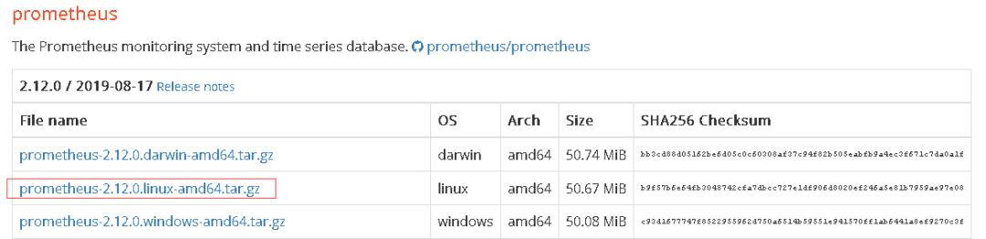 /** 下载*/wget https://github.com/prometheus/prometheus/releases/download/v2.12.0/prometheus-2.12.0.linux-amd64.tar.gz/** 解压*/tar -zxvf prometheus-2.12.0.linux-amd64.tar.gz