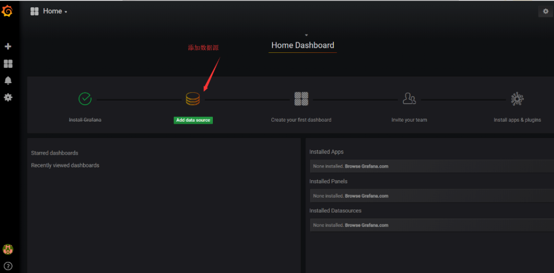 如果之前在grafana上没有配置过数据源 登录后会提示创建