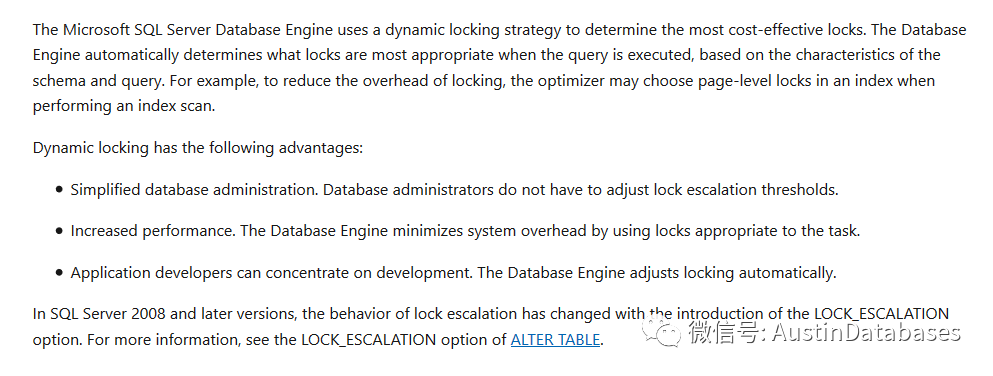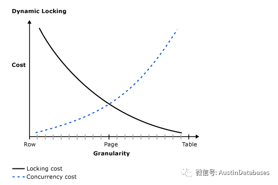 SQL SERVER 与其他数据库不一样的地方,在于资源的动态锁定,也就是他可能一开始使用了ROW 锁, 但由于后期整体操作的复杂度提高,直接将ROW 锁升级为页锁, 而其他的数据库目前我是没有听到有确认的一种叫法 Lock escalation.