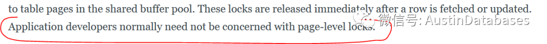 所以可能如果从之前理解的一些页锁的概念和使用的方式来说, PG的页锁是不可随意控制,从应用程序developer角度也无需深刻理解的。