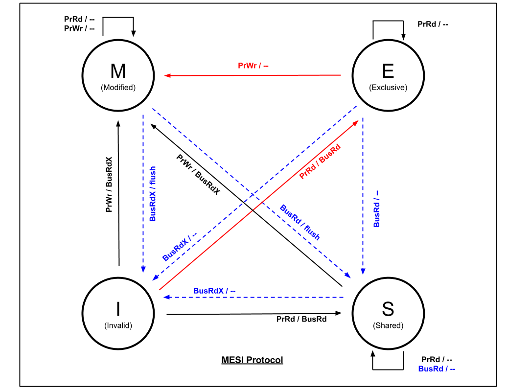 规则里面规定了所有车间的缓存单元——缓存行有四种状态: