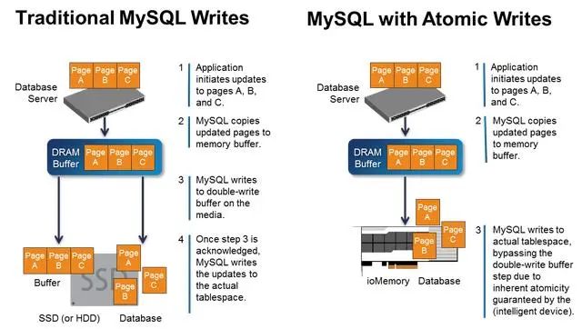 如果MySQL依赖的存储介质可以提供可配置写入大小的原子写(Atomic Write),可以直接关闭Double Write,这会在以下几个方面带来巨大收益:
