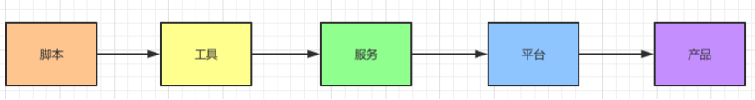 后面通过不断迭代和试错,将这些经验从脚本→工具→服务→平台→产品进行转换。