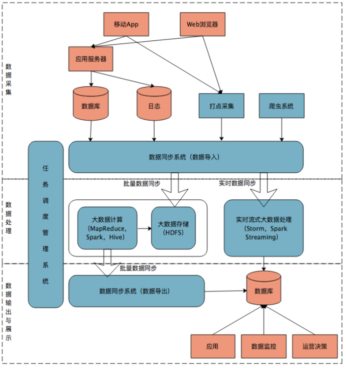 再将这些信息数据和日志等同步到大数据系统中,注意同步的过程需要考虑数据源和数据结构的差异。