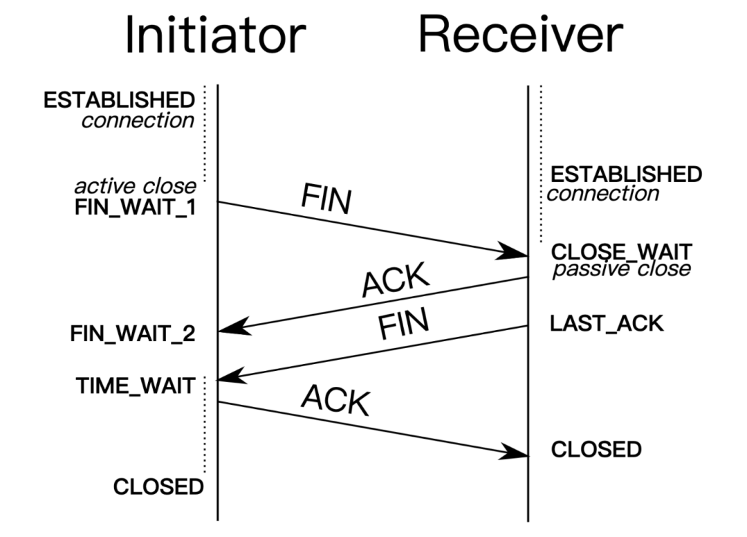 首先,客户端应用程序决定要终止连接(这里服务端也可以选择断开连接)。这会使客户端将 FIN 发送到服务器,并进入 FIN_WAIT_1