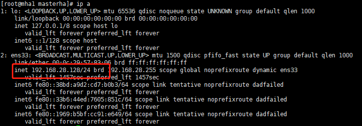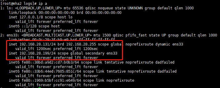 ip addr add 192.168.28.199/24 dev ens33 # 其中 192.168.24.199为VIP ens33为网卡名