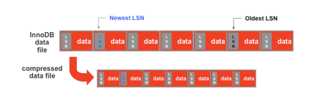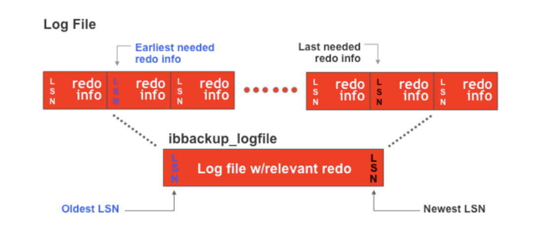 在复制数据文件期间积累的InnoDB日志文件,使用LSN进行复制。